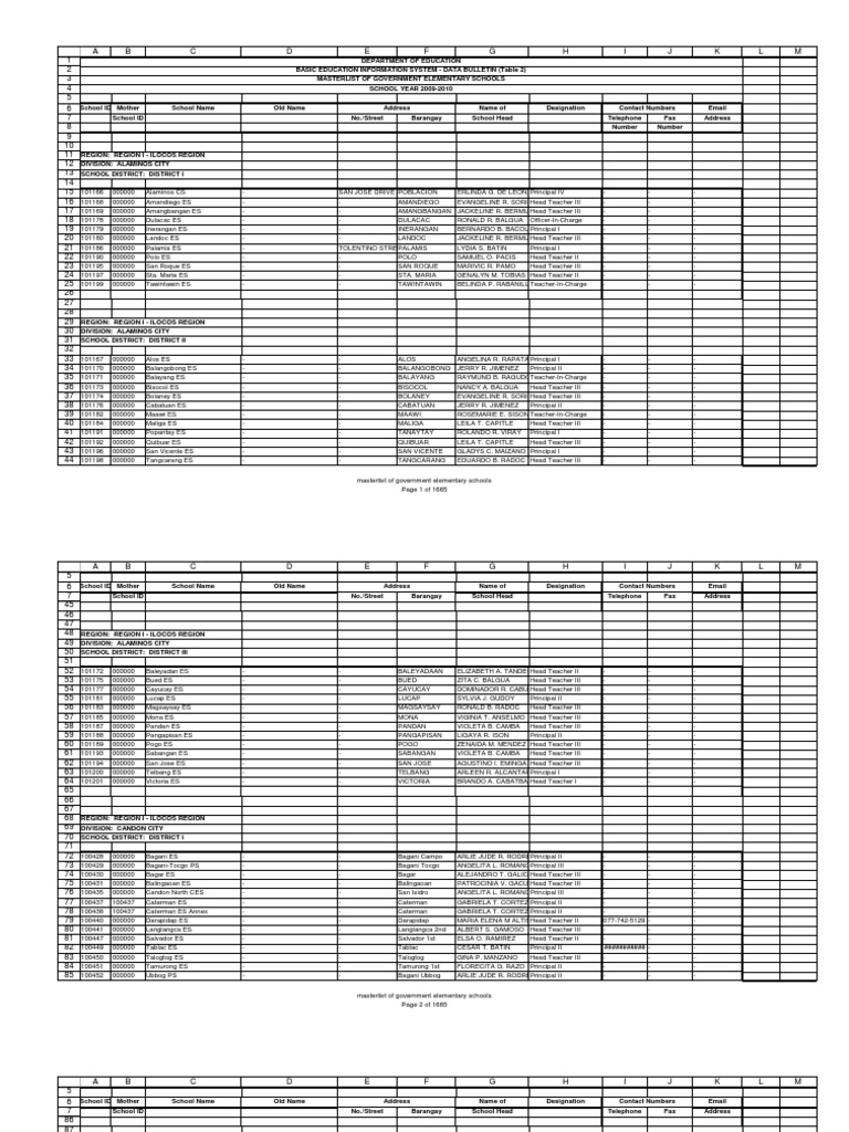 09 Elem Masterlist Pdf Telecommunications